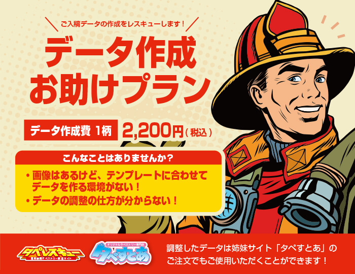 今すぐタペストリーを作りたい、なるべく早く欲しい、そんなお客様をタぺレスキューがお助けいたします。