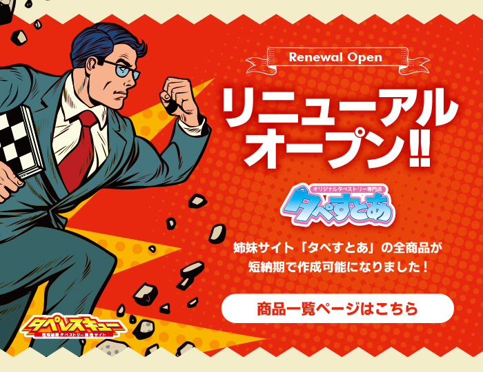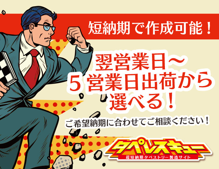 姉妹サイトである「タぺすとあ」の全商品が短納期対応可能となりました!